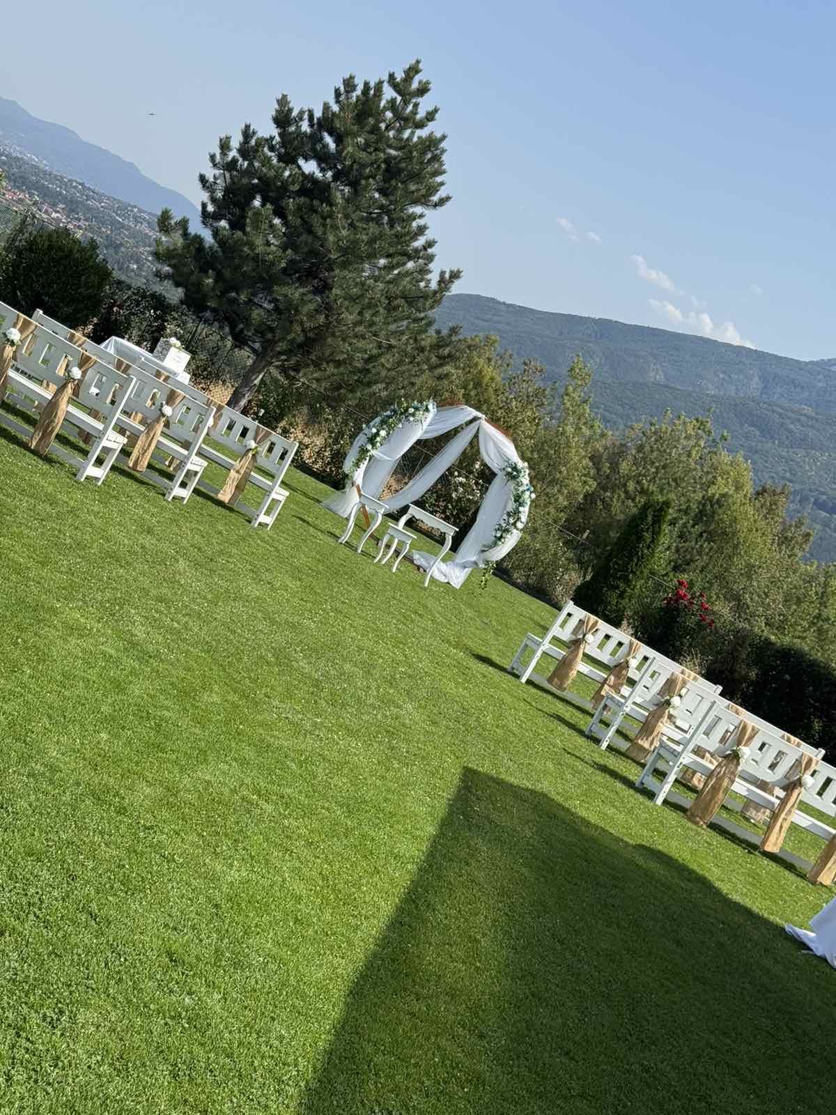 Също така Ние ще организираме перфектно Вашата СВАТБА като се погрижим за абсолютно всичко от посрещането и уелкъм дринка до разполагането на гостите в сватбени шатри малки или големи по Ваш вкус, като броят на гостите може да бъде дори и над 150-200. Съдействие за Ди джей, фото, камера, организиране на изнесен ритуал, ще получите и подарък Безплатна сватбена украса в цвят по избор както и индивидуални проекти по ваше желание и специално отношение към всеки детайл. Нашата цел е да направим вашият ден приказен, точно както си го представяте.